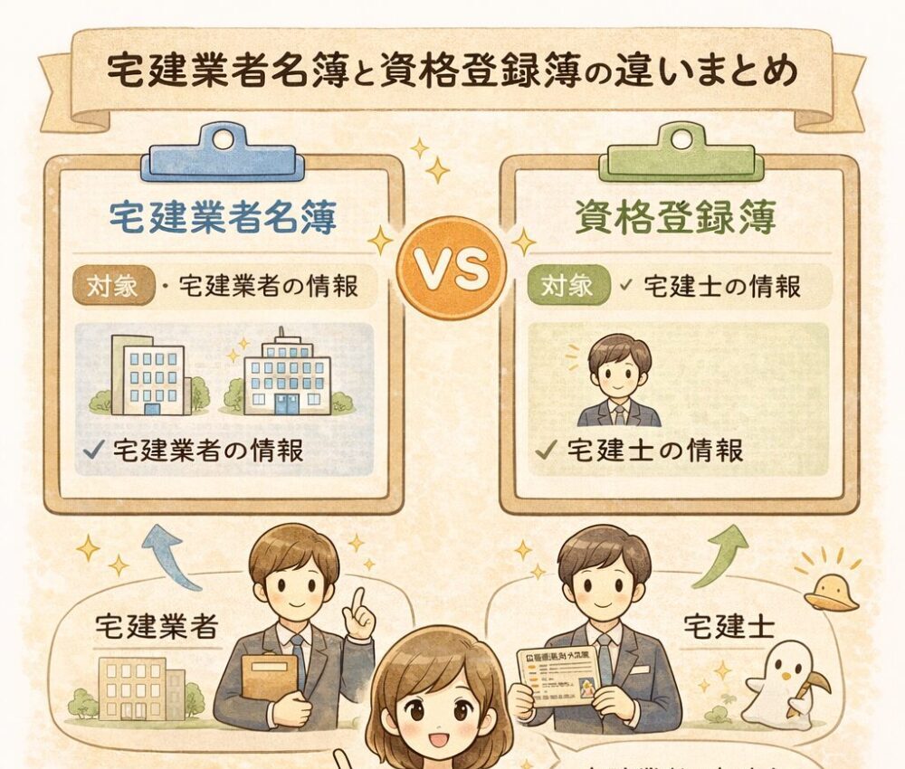 🚩宅建業者名簿と資格登録簿の違いまとめ